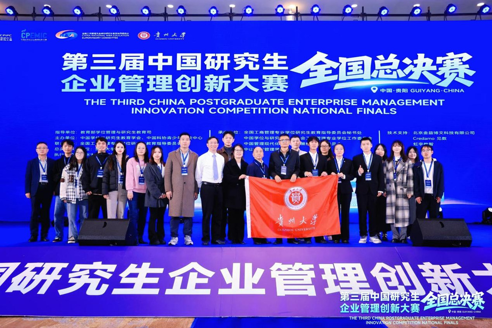 11月7-9日,第三届中国研究生企业管理创新大赛总决赛在贵阳举办。经激烈角逐,我校斩获全国一等奖6项、全国二等奖4项、全国三等奖10项、见数实践奖1项。同时,我校教师刘小红、先桁、龚潇潇、项凯标、程贞敏、唐飞、邓琳、覃雪等获评“优秀指导教师”,学校荣获“优秀组织奖”。全国一等奖获奖数位居全国首位,总获奖数位居全国前列,刷新我校参赛以来最好成绩!本届比赛自8月启动以来,历经校内选拔赛、全国复赛、全国总决赛多轮竞技,党委研究生工作部提前谋划、全程跟踪,管理学院精心组织、超前培育,取得了较大突破。此次获奖不仅体现了学校持续深化研究生教育改革、着力培养拔尖创新人才的重要成果,还彰显了我校在数智时代高层次应用型管理人才培养与交叉学科建设中的显著成效。未来,学校将继续搭建更广阔的管理实践创新平台,为服务贵州经济社会高质量发展做出更大的贡献。据悉,“中国研究生企业管理创新大赛”是“中国研究生创新实践系列大赛”主题赛事之一,由教育部学位管理与研究生教育司指导,中国学位与研究生教育学会、中国科协青少年科技中心、全国工商管理专业学位研究生教育指导委员会联合主办,总决赛由贵州大学承办。本届大赛自2025年8