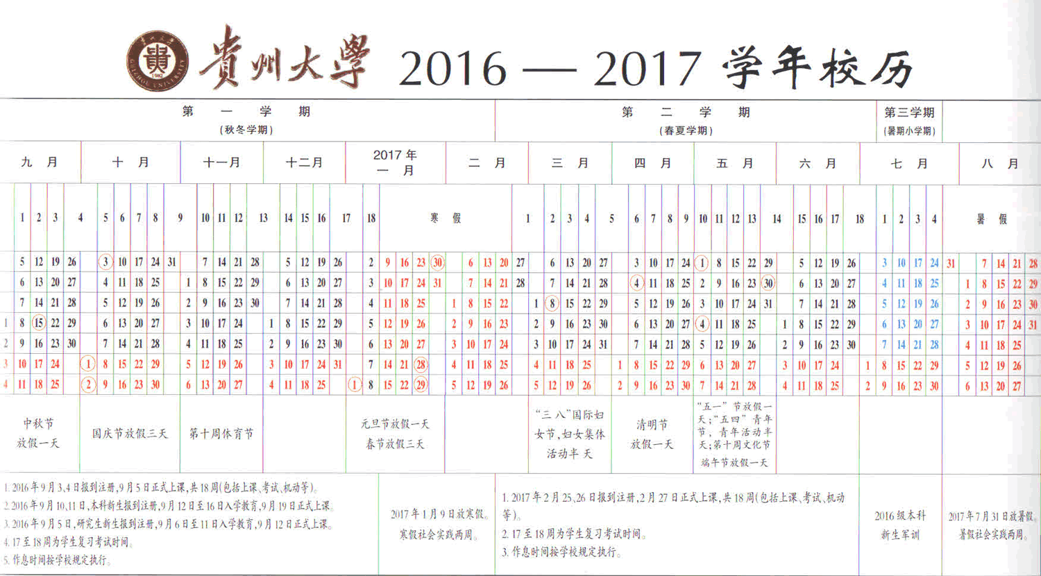 贵州大学2016-2017学年校历