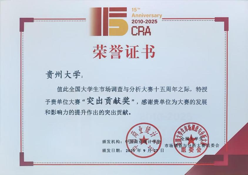 9月27日,全国大学生市场调查与分析大赛十五周年总结颁奖大会暨第十六届大赛启动会在北京召开。我校在此次表彰中表现突出,不仅揽获多项集体与个人荣誉,还成功获得第十六届大赛贵州赛区研究生组承办权。