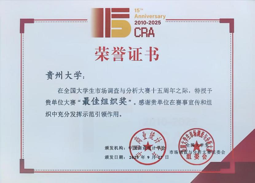 此外,我校还承办了第十五届大赛研究生组& 在华留学生组全国总决赛及贵州赛区赛事。通过多次承办各级赛事,我校有效推动了数学统计学、经济学、管理科学及相关专业的快速发展,促进跨学科融合,深化 “学-教-研” 教学改革与 “产-校” 校企协同发展,显著提升了全校学科竞争力,也加强了与兄弟院校的学术交流。