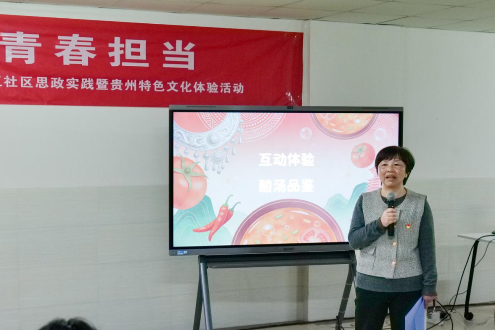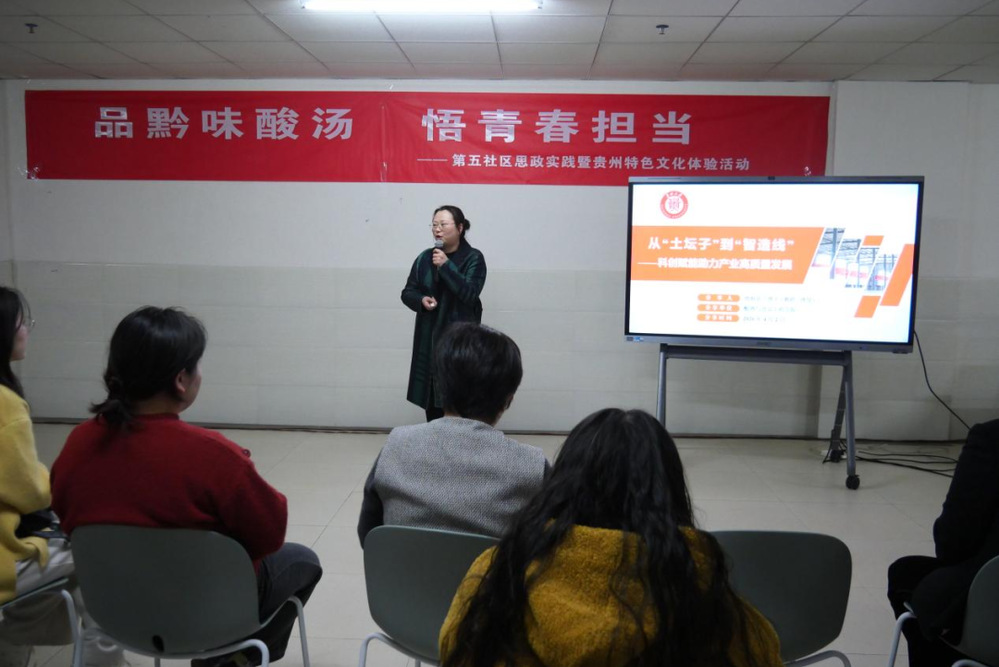 2026年4月2日下午,由贵州大学第五学生社区党总支、贵州大学第五学生社区联合主办的“品黔味酸汤·悟青春担当”一站式社区思政实践暨贵州特色文化体验活动于西校区第五学生社区(23栋大厅)顺利开展。大数据与信息工程学院党委正处级组织员、第五社区党总支书记江河,酿酒与食品工程学院党委副书记、第五社区党总支副书记张丽华,酿酒与食品工程学院教工支部曾海英教授出席本次活动,第五社区各功能型党支部党员代表50余人参与活动。活动由农学院副处级组织员、第五社区副区长蔡菲主持。